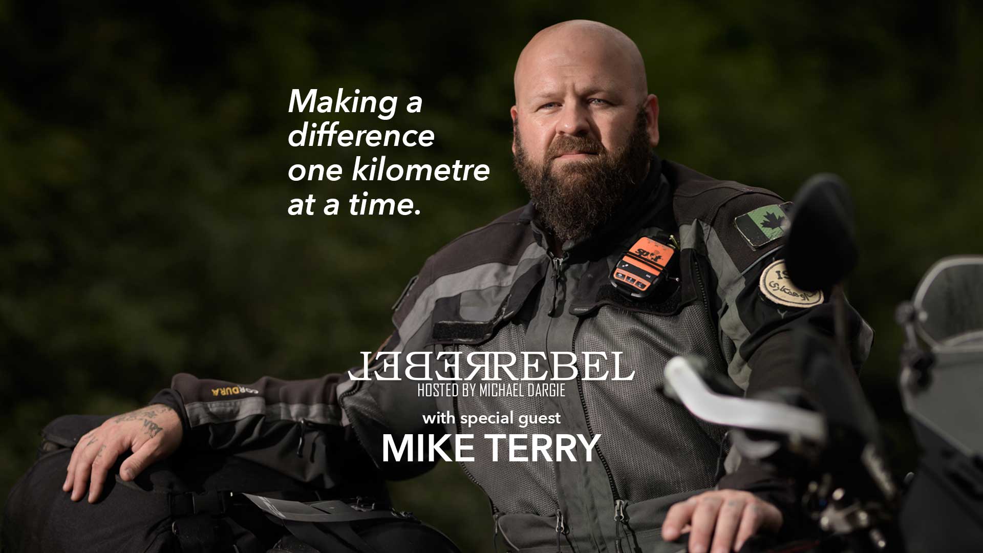 Mike Terry is a retired 23-year Canadian Forces Combat Arms veteran who spends his time touring the country raising awareness about PTSD on his KLR 650 motorcycle.
